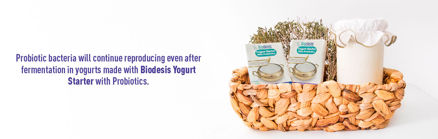 Probiotic bacteria will continue reproducing in yogurts made with Biodesis Yogurt Starter with Probiotics. This reproduction will increase the probiotics value of your yogurt further..